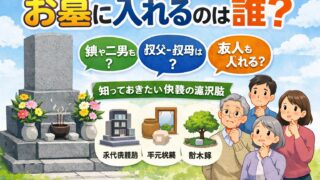 お墓には誰が入れるのか気になる方へ。娘や二男、叔父・叔母、友人、内縁のパートナーなどが実家の墓に入れるのかをわかりやすく解説します。霊園の規則や家族の合意の重要性、お墓に入れない場合の永代供養や手元供養などの対処法も紹介します。