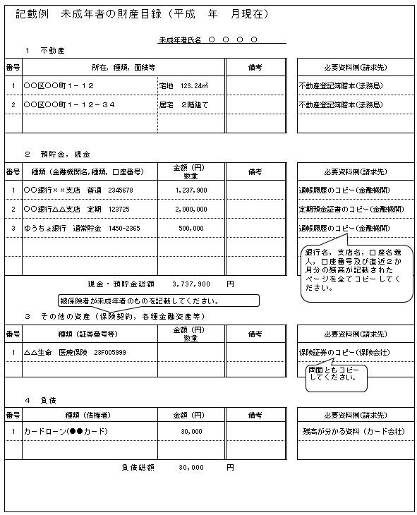 - 預貯金、不動産、株式、車など、すべての相続財産を正確に記載する必要があります。口座番号や不動産の登記情報など、第三者が確認できる情報まで書くとトラブルを防げます。