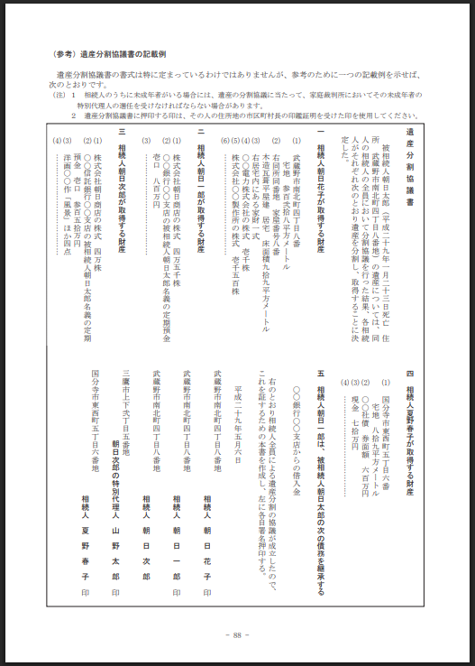 - 協議内容は具体的に書くことが重要です。「預貯金は平等に」といったあいまいな表現は避けましょう。